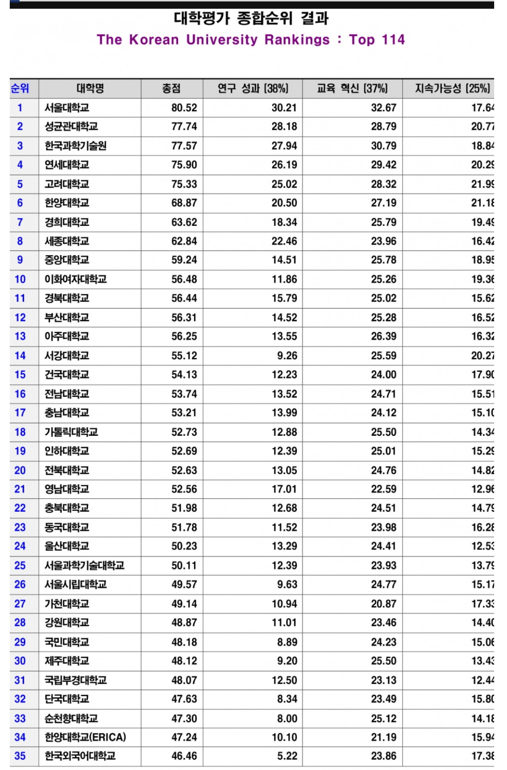 | 1위 | 서울대학교 | |