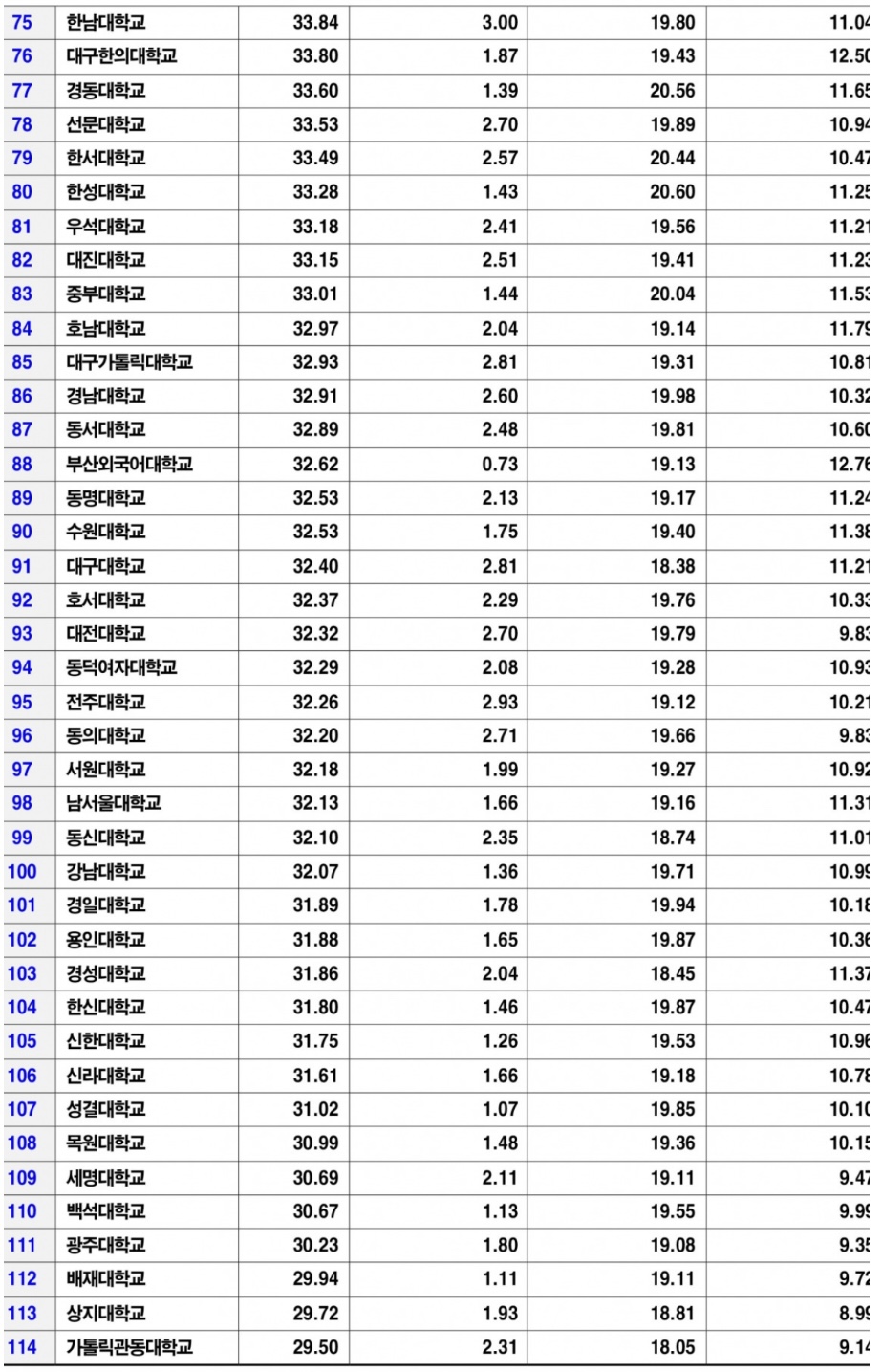 | 75위 | 한남대학교 | |