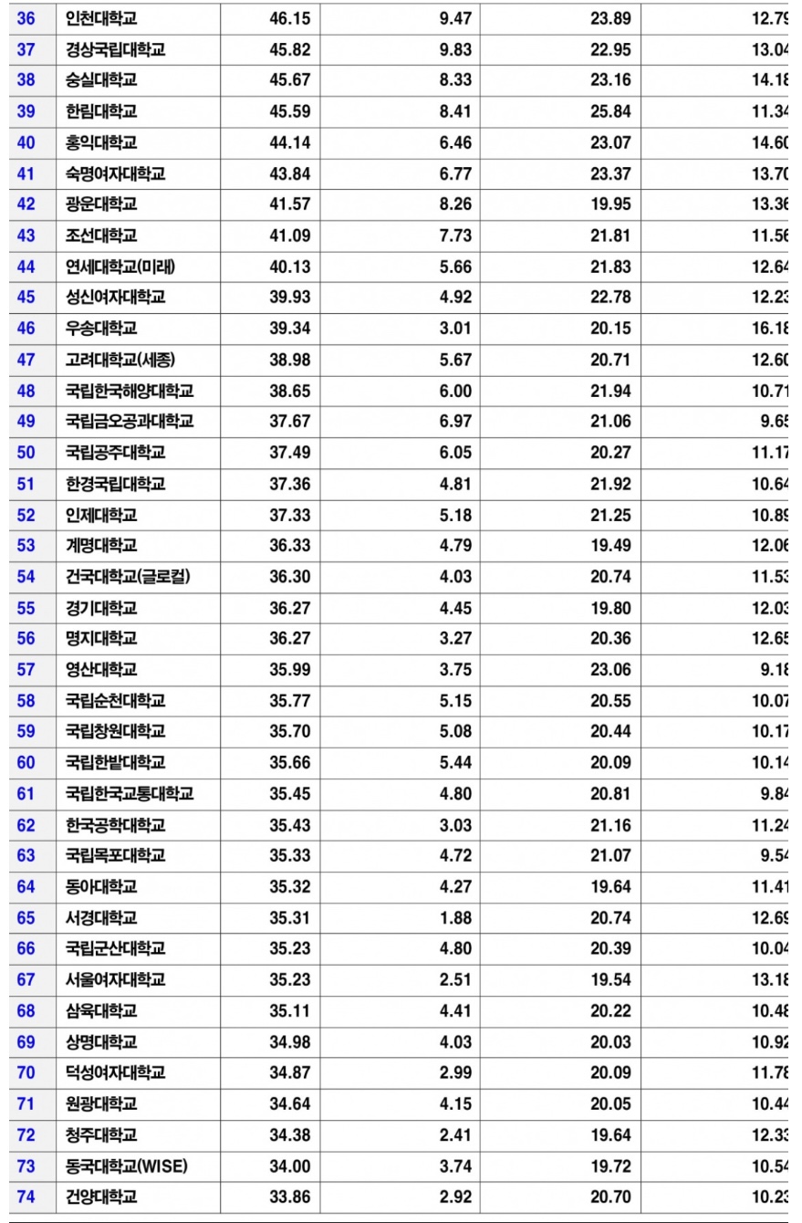 | 54위 | 건국대학교(글로컬) | |